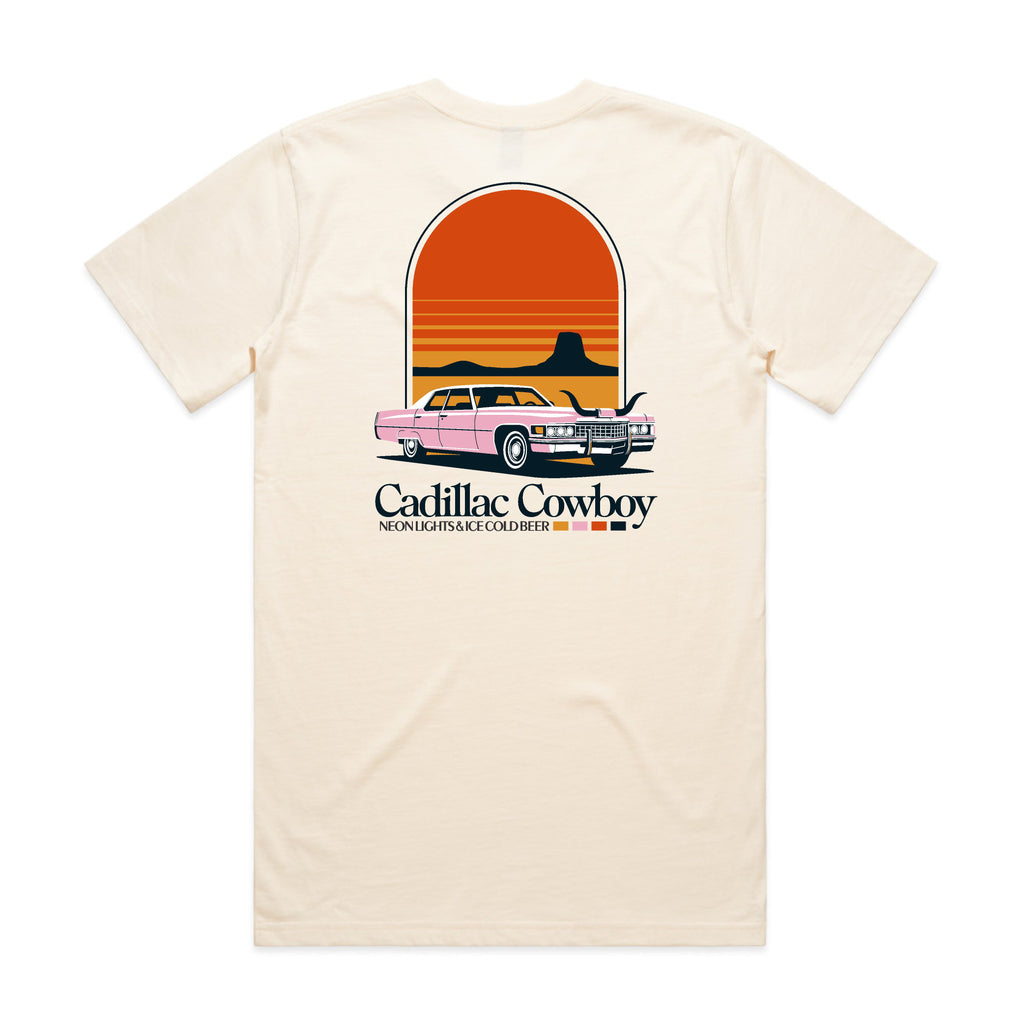 Inspired by legendary Chris LeDeux, this tee captures the spirit of late nights, cold beer, and neon lights. Perfect for those who live by the outlaw country ethos—bold, unapologetic, and unmistakably Western. Wear it as a tribute to the music, the lifestyle, and the freedom that defines the Cadillac Cowboy.