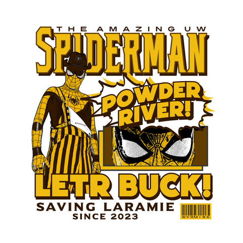 Swing into Cowboy Country style with The Amazing UW Spider-Man Tee, where superhero grit meets Wyoming pride. This exclusive mashup design features a bold comic-inspired print blending Spider-Man’s iconic look with the rugged Western spirit of the University of Wyoming.